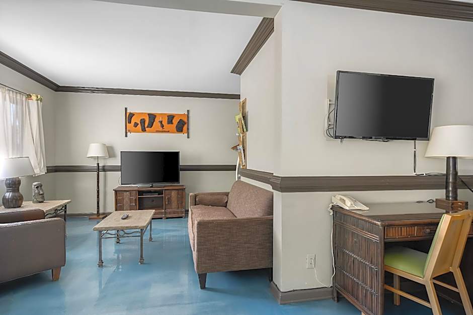This family room has a seating area and cable TV.